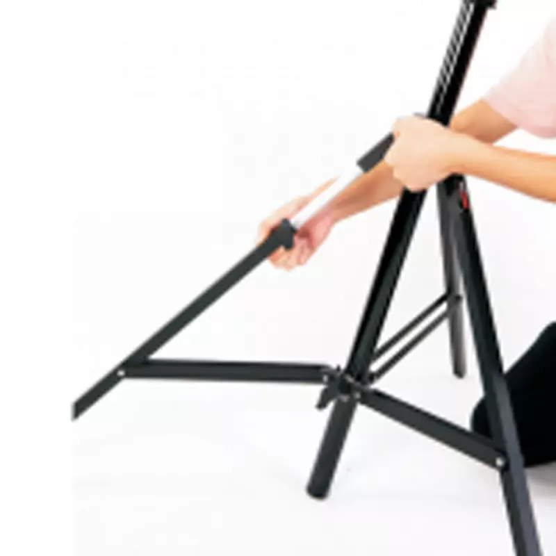 Features: Professional film lighting stand equipped with independently adjustable legs—suitable for uneven terrain or tiered setups.