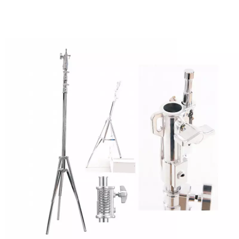 Features: Professional film light stand with independently adjustable leg tubes for uneven terrain or step-by-step installation; built-in spring buffer mechanism ensures smooth and secure operation.