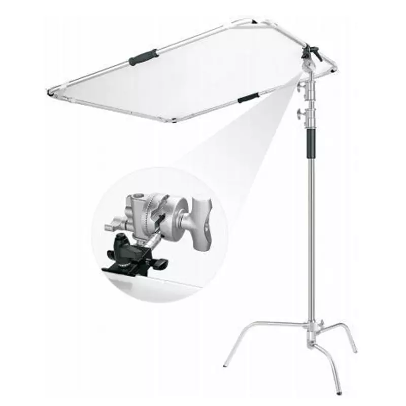Kitin cludes: Diffusion panel 、Silver/white fabric 、Gold/black fabric 、Filter cloth 、Carry bag 、Frame+hand-held pole 、C-stand extension arm