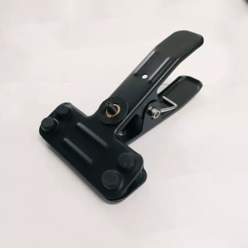 The clamp securely attaches to round poles, tabletops, or any flat surface for versatile mounting.